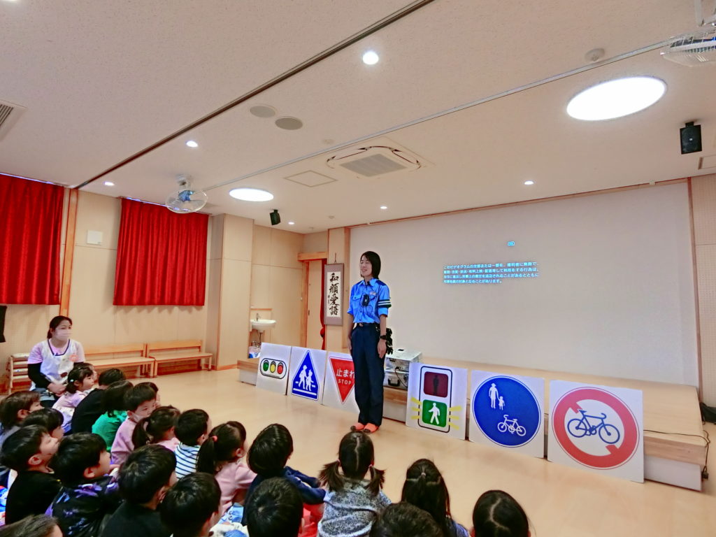 西新井警察署の方が来園し、交通安全について子ども達にご指導してくださいました。