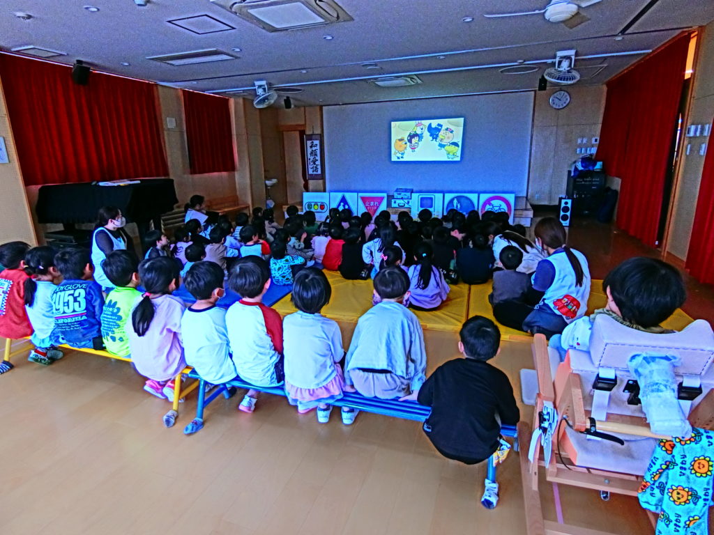 ・DVD、紙芝居を見て、交通安全について学びました。