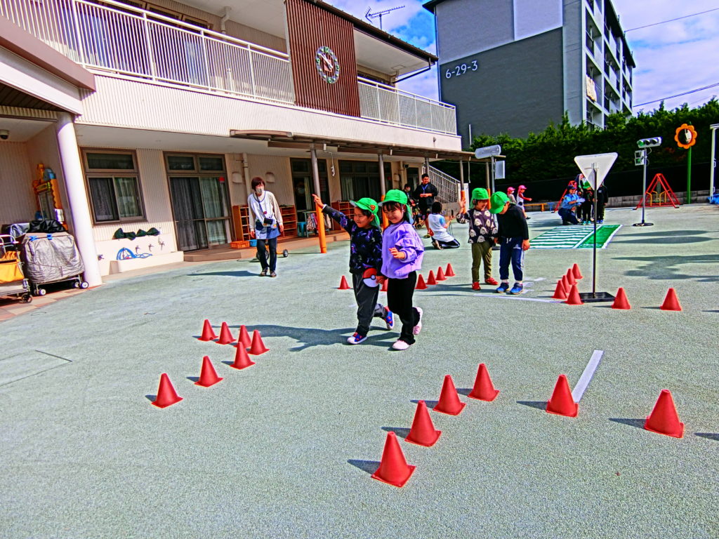 ・園庭に信号機・横断歩道を設置して下さり、青信号になったら