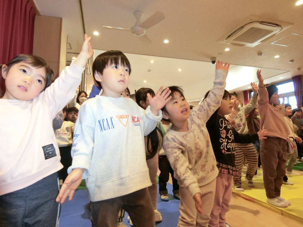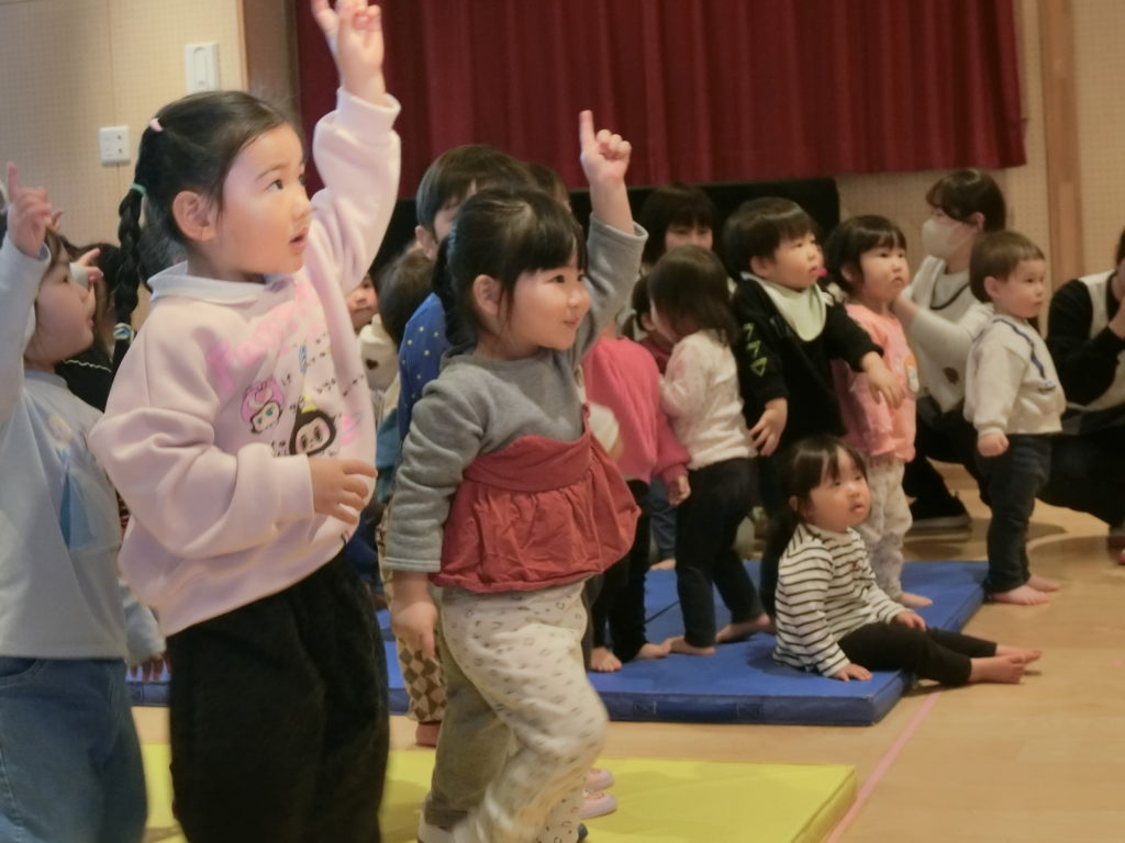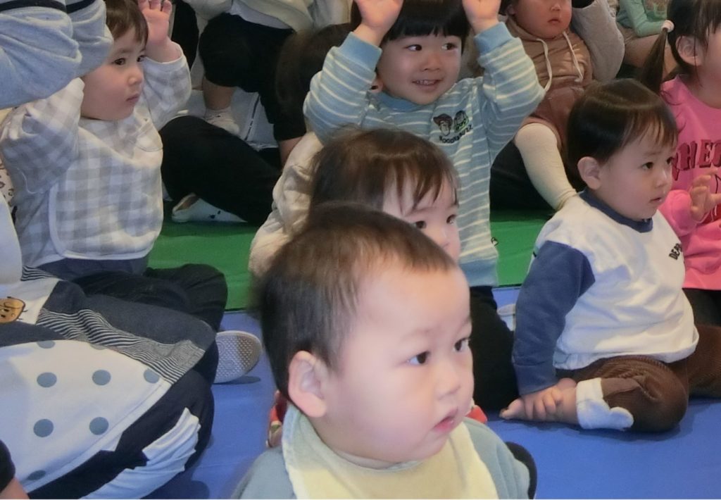 参加型の演目だったこともあり、乳児クラスの小さな子どもたちも、体でリズムをとったり、