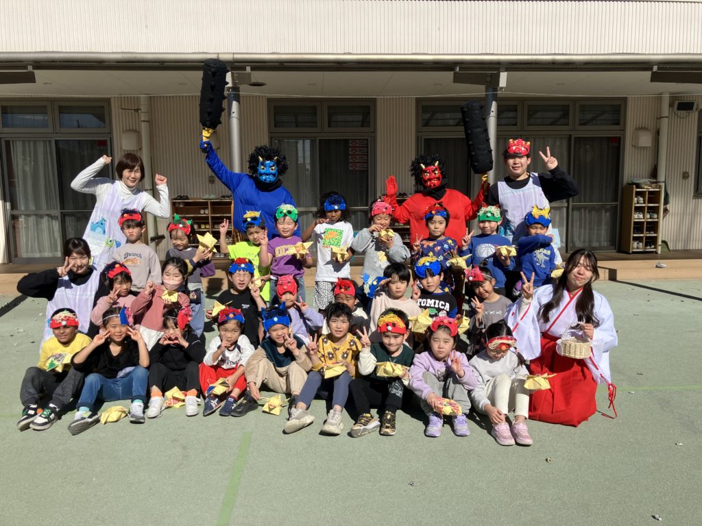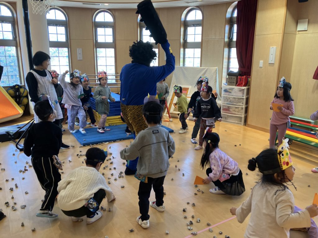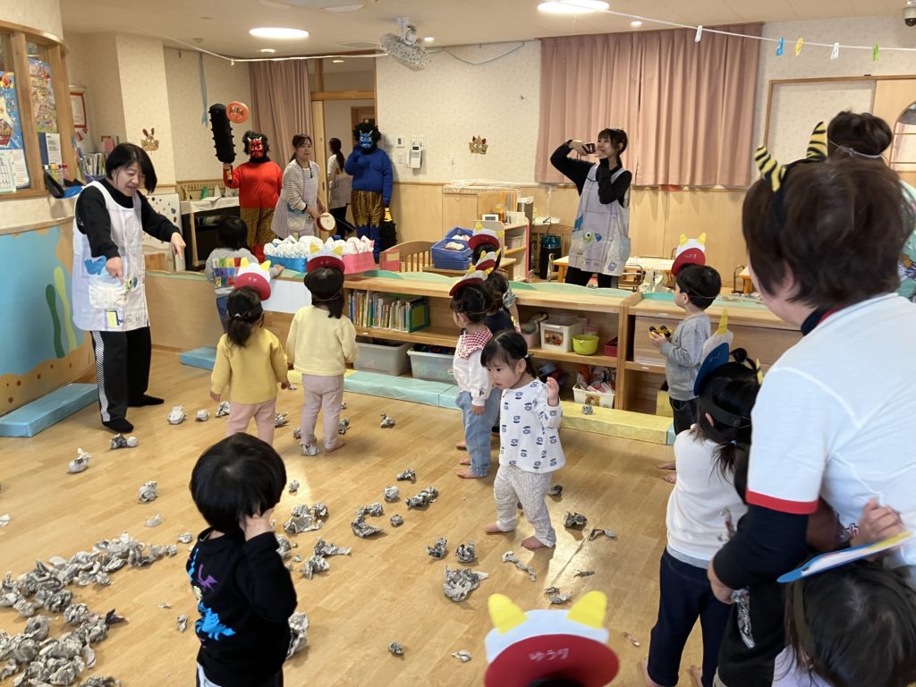 朝から「鬼をやっつけるぞ!」と意気込んでいる子や、ちょっぴり不安そうにする子もいました。