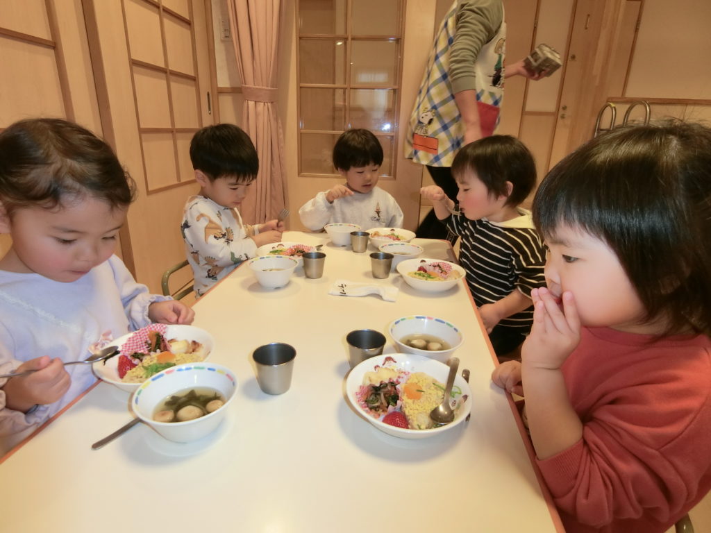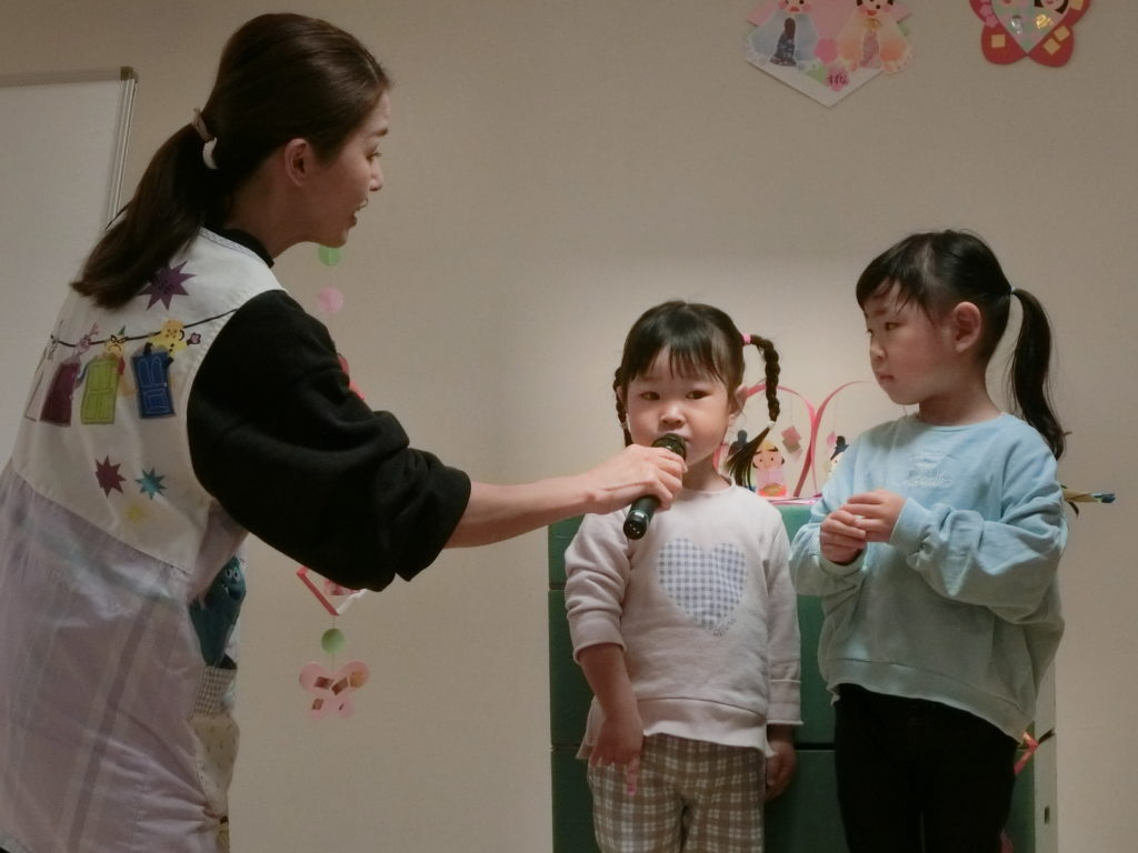「ひな祭りの歌を3番までみんなで歌ってくださいね。」